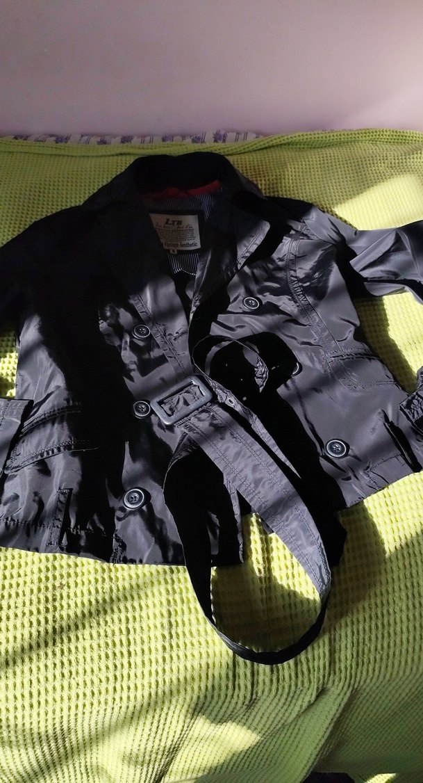 Kemerli, kısa kesimkollara sahiptir. Sentetik kumaştan yapılmıştır, dış mekan sokak stili için uygundur.