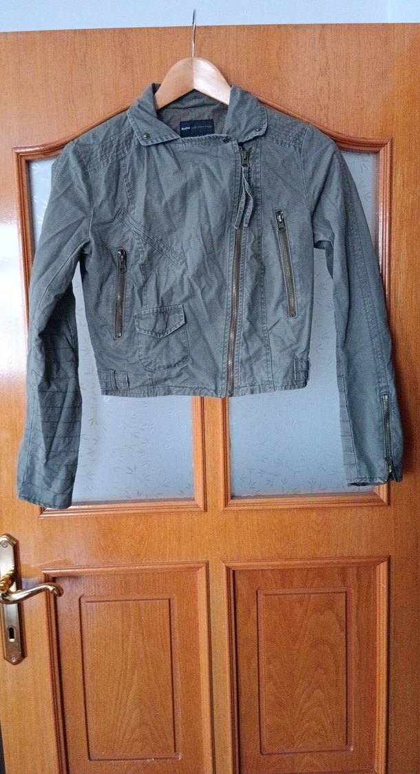 Kemerli, uzun kollu ve kısa kesim gri denim ceket. Notlu yaka ve fermuarlı cepleriyle sokak stiline uygun, fit kesim.