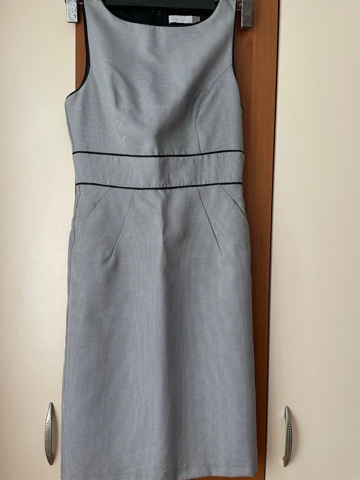 Kolsuz, kemerli, normal boy gri kalem elbise, notched lapel yakalı ve sentetik kumaştan, ofis için uygundur.