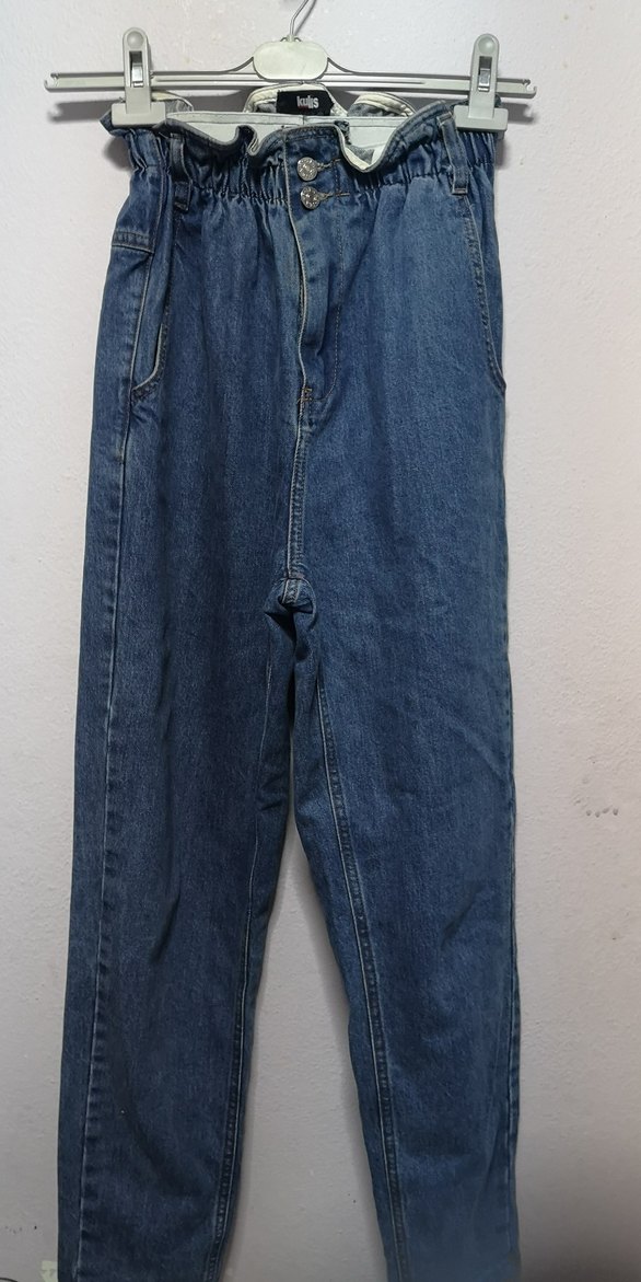 Gri kemerli, midi boy, bol kesim mavi denim kot pantolon. Günlük kullanıma uygun, rahat sokak stili jeans.boyu 103 cm beli 34cm s beden ağı 38cm paçası 14.5 cm