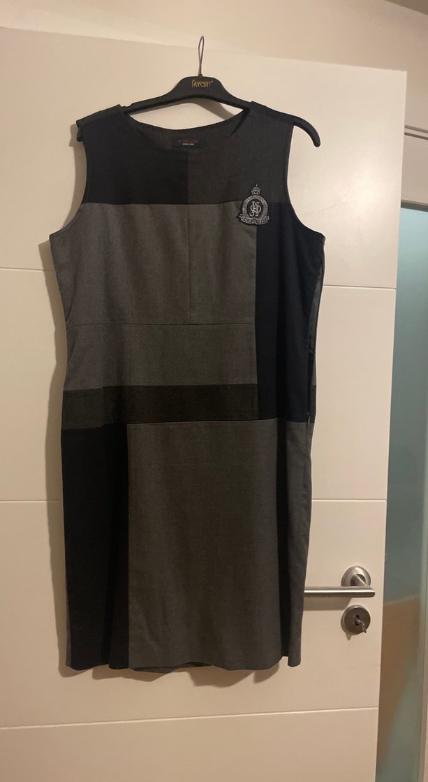 Kemer detaylı, yakası kesik, kolsuz gri midi elbise. Sentetik kumaştan, iş ortamına uygun goth tarzında, regular fit.