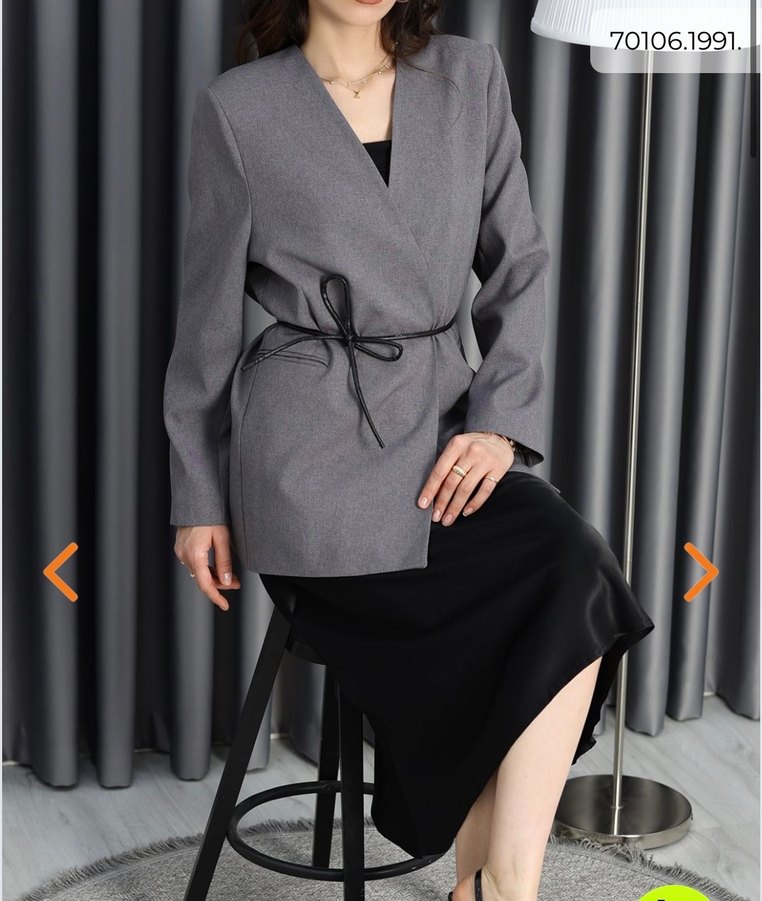 Gri renkte, normal uzunlukta midi ofis ceketi. Notlu yaka, kemerli ve bol kesimli. İpeksi kumaştan, askılı kollu, şık ve rahat bir iş kıyafeti. Üzerimde açım grisi var elimde koyu gri var duruşuna bakmanız için açık rengi koydum standart beden kuşağı ile beraber gelecek açık gri olan satıldı standart beden