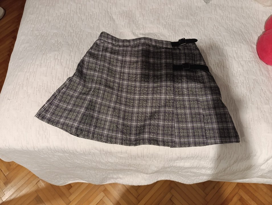 Gri renkli, kemerli ve bol kesim mini etek, sentetik kumaştan üretilmiştir. Rahat sokak stili için uygundur.