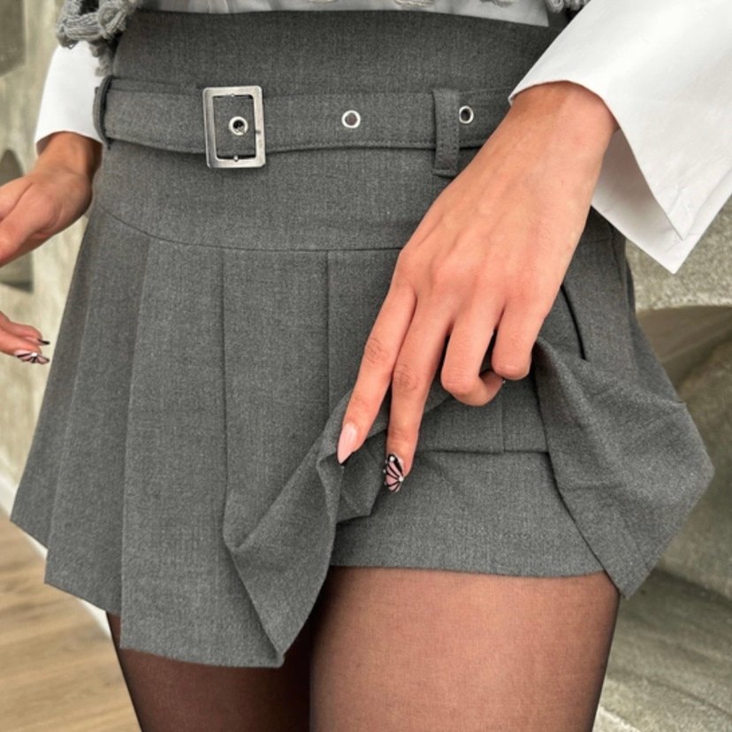 Gri Kemerli Mini Etek Şortlu Esra Helvacı