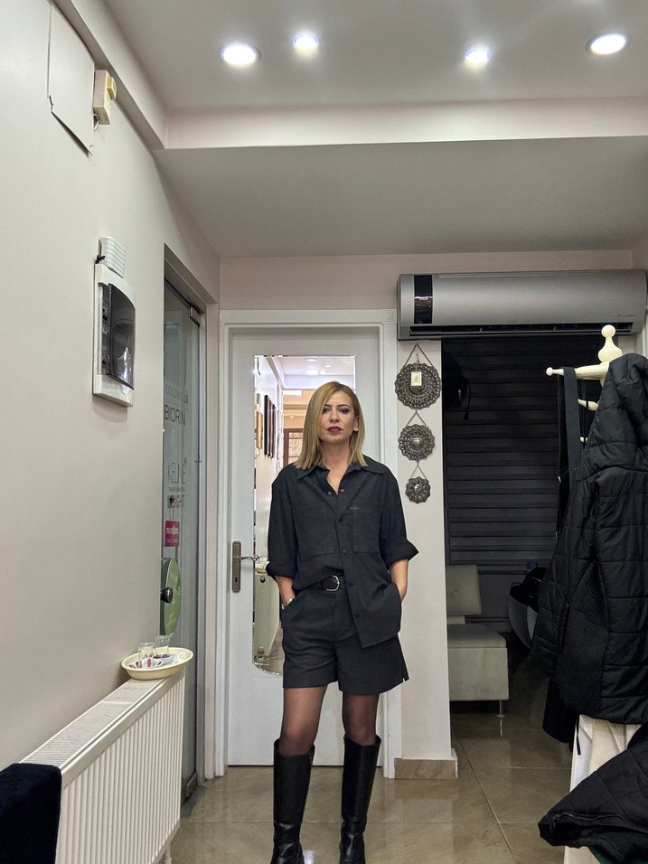Gri Kemerli Mini Kadın Şort Gömlek takım
