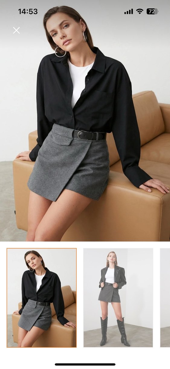 Gri Kemerli Mini şort Etek