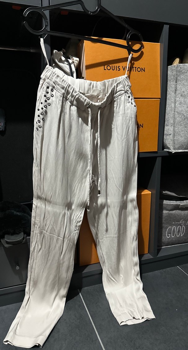 Gri renkli keten kumaştan, kemerli ve rahat kesime sahip midi boy kadın pantolon. Günlük kullanım için uygun, desen içermeyen sokak stili pantolon.