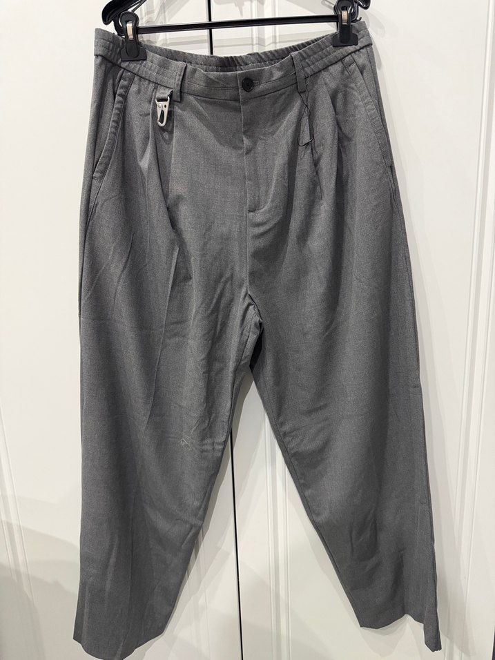 Gri renkli keten kumaştan, kemerli ve rahat kesimli midi boy kadın pantolon. Düz desensiz, günlük kullanım için uygun sokak stili pantolon.