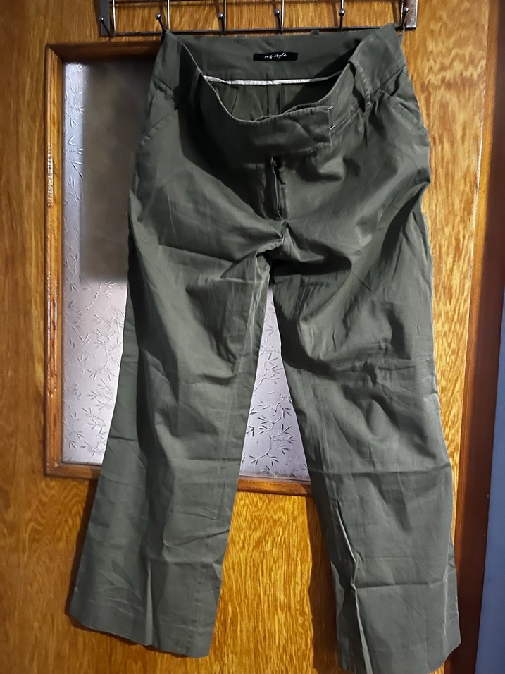 Gri renkli, kemerli ve bol kesim kadın pantolon. Sentetik kumaştan, midi boyda, sokak stili ve açık hava kullanımı için uygun.bel 43 boy 94 cm