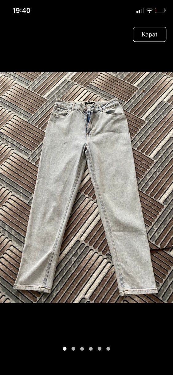 Gri kemerli, regular fit, midi boy, batik desenli denim kadın jean. Günlük rahat kullanıma uygundur.