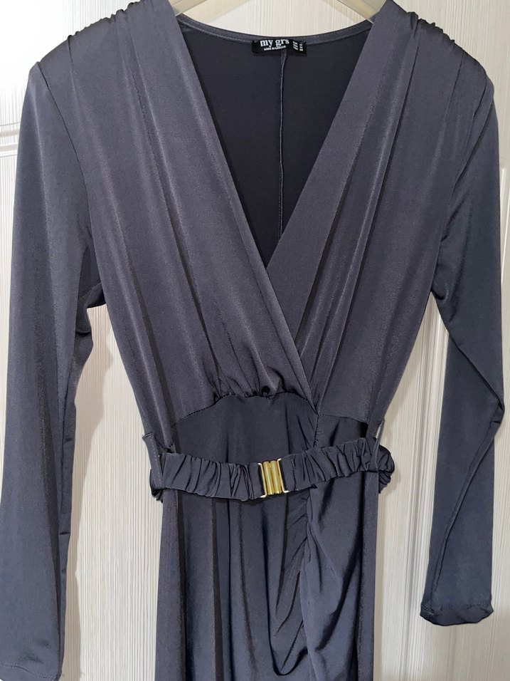 V yaka yırtmaçlı uzun elbise. Bir kere giydim düğün için almıştım.
