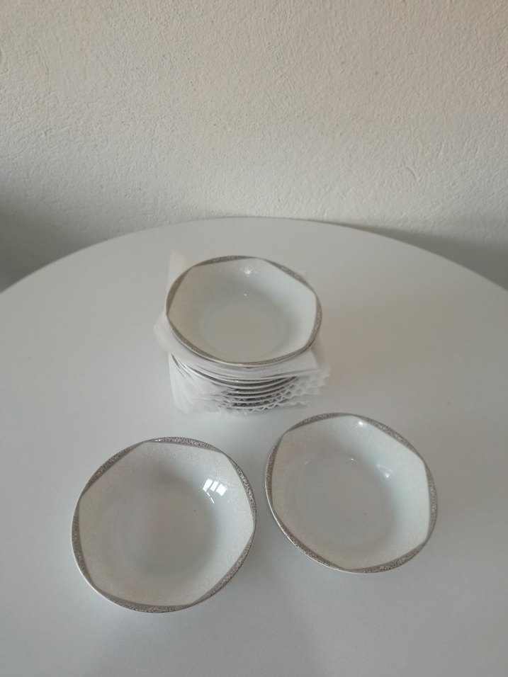 Gri Kenarlı Beyaz Seramik Kaseler 12 adet