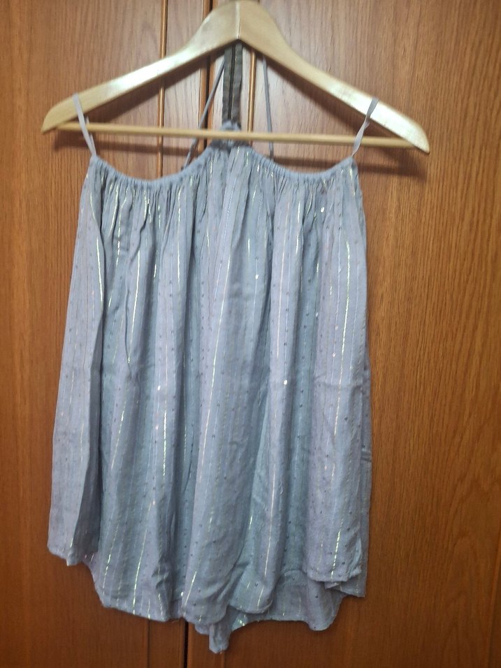 Gri keten kumaştan, askılı ve salaş kesim keten takim Drapeli ve desensiz yapısıyla bohem tarzını yansıtır. Günlük kullanıma uygundur.