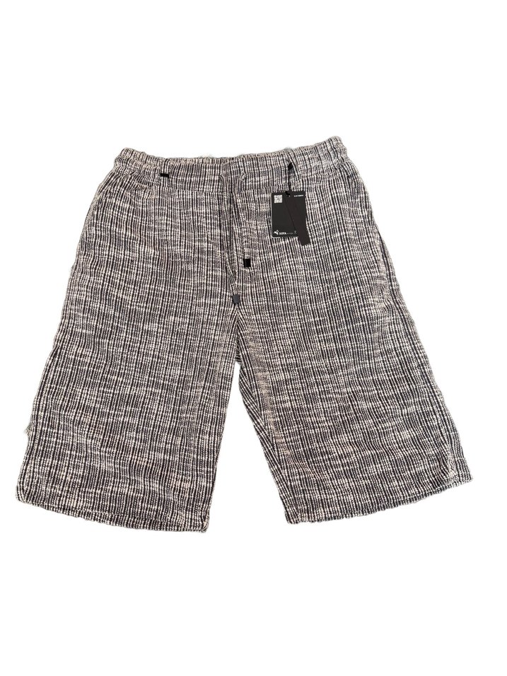 Gri keten kumaştan, bel kemerli, bol kesim erkek şort. Sokak stiline uygun, kısa ve rahat tasarım.