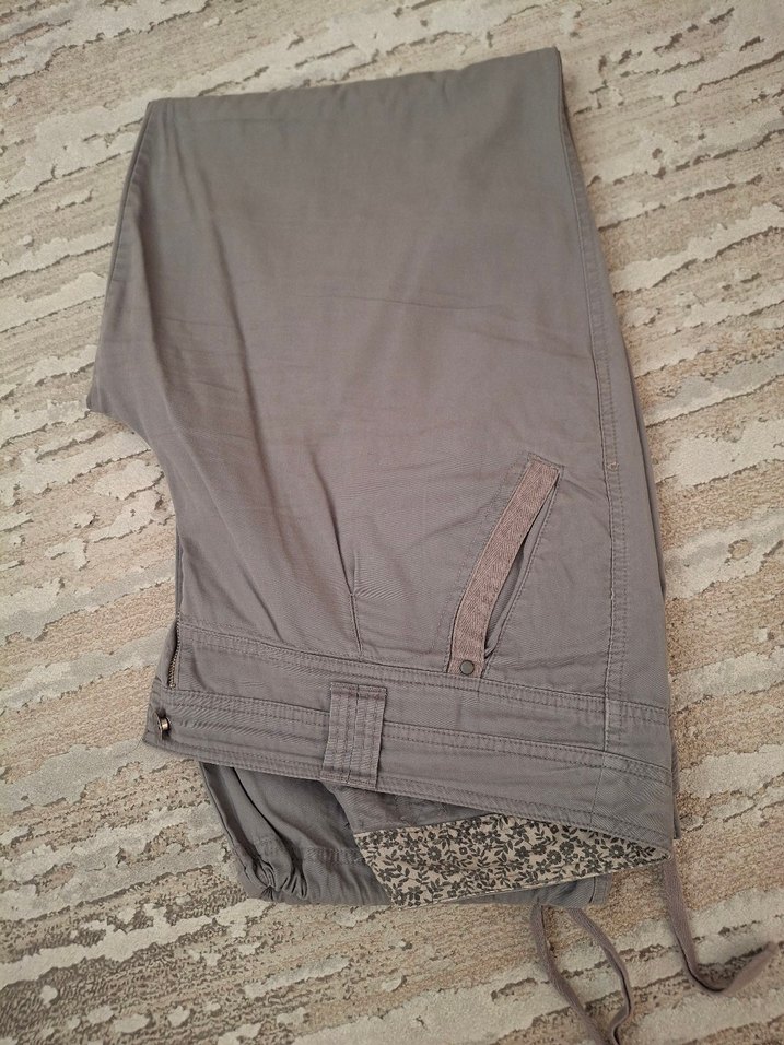 Gri keten kumaştan, bol kesim ve kemerli, günlük kullanıma uygun rahat kadın pantolonu. Normal boy ve desensiz sade tasarım içerir.