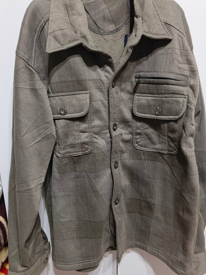Gri keten kumaştan, notalı yaka ve düğmeli ön kısmı olan uzun kollu erkek gömleği. Rahat kesimi ve iki göğüs cebiyle günlük kullanıma uygundur.