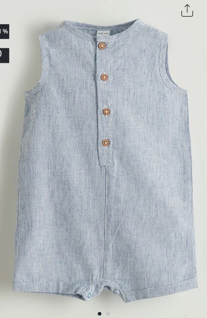 Kolsuz, keten kumaştan yapılmış gri erkek bebek tulumu. Yuvarlak yaka ve düğmeli kapama özelliğine sahip, sade ve rahat tasarım.