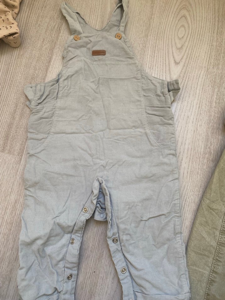 Gri keten kumaştan, düğmeli ve kolsuz erkek çocuk tulumu. Rahat kesimiyle sokak stiline uygun.