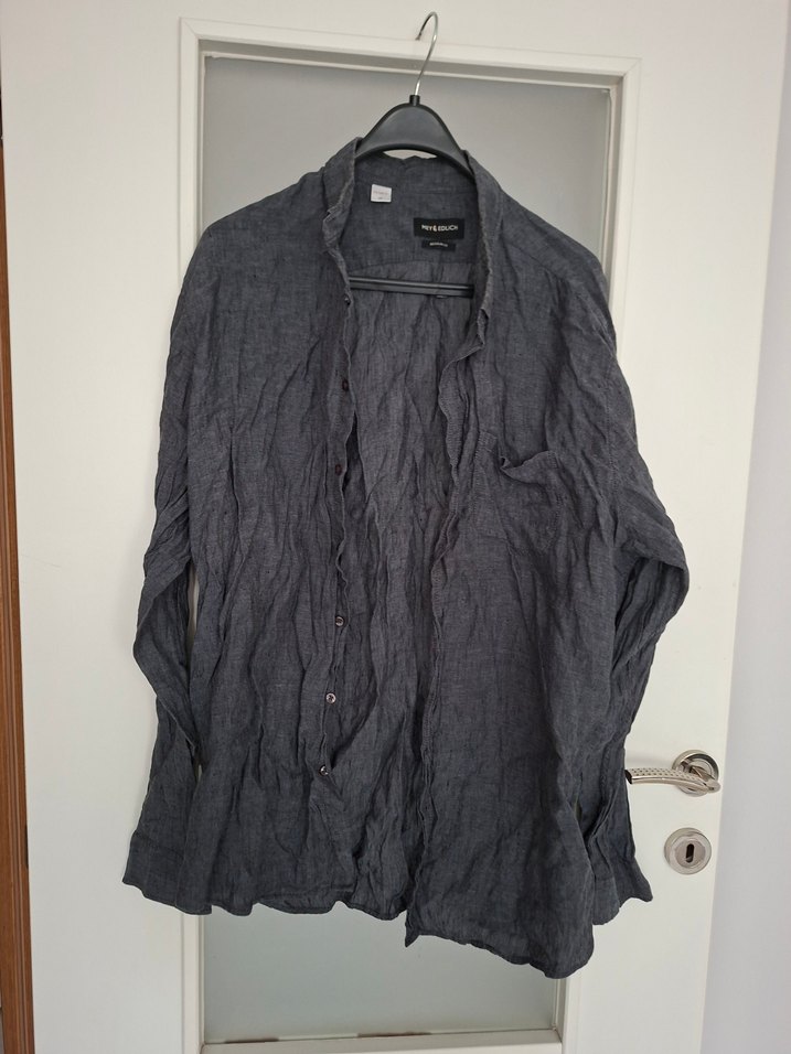 Gri renk keten erkek gömleği, rahat kesim ve uzun kolludur. Çentikli yaka ve düğmeli detayları vardır, günlük kullanıma uygundur.