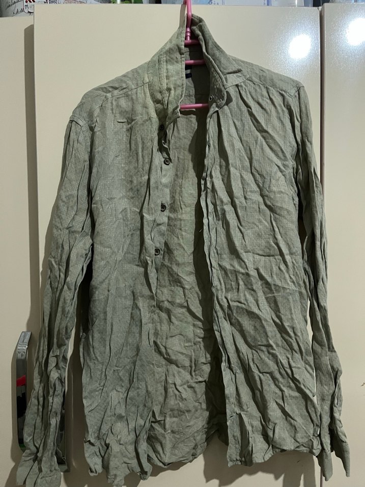 Gri renkli, keten kumaştan yapılmış erkek gömleği. Uzun kollu, düğmeli ve notlu yakalıdır. Salaş kesimiyle günlük sokak stiline uygundur.