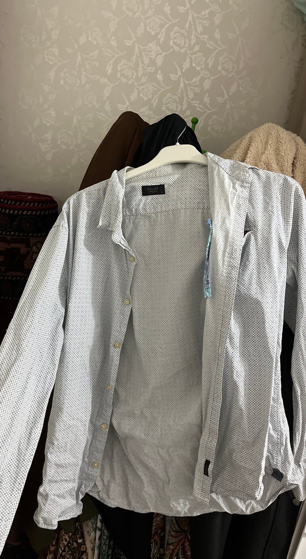 Gri renkli erkek gömlek, yakalı ve uzun kolludur. Nefes alabilen keten kumaştan, rahat kesimlidir. Düğmeli ön kısmı, desensiz sade tasarımıyla günlük kullanıma uygundur.