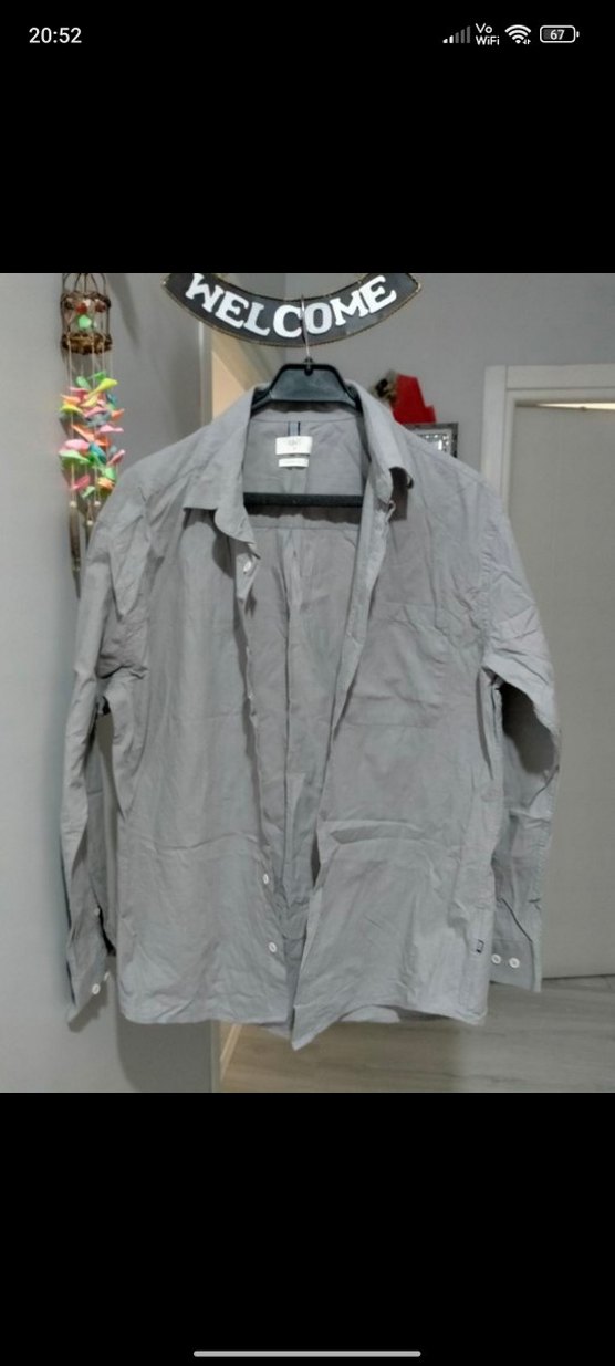 Gri renkte keten kumaştan, uzun kollu, yakalı ve düğmeli erkek gömleği. Günlük kullanıma uygun, rahat kesim ve sokak stilinde. Ürün hiç giyilmedi.