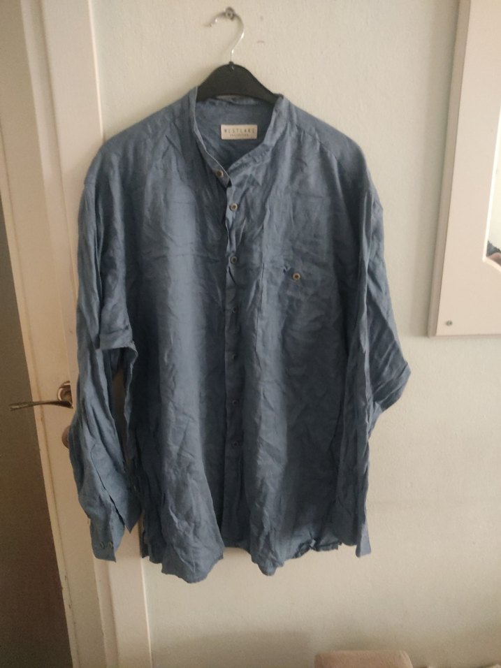 Yumuşak keten kumaştan yapılmış, gri renkte, yakalı ve düğmeli, bol kesim erkek gömlek. Günlük rahat kullanım için uygundur.