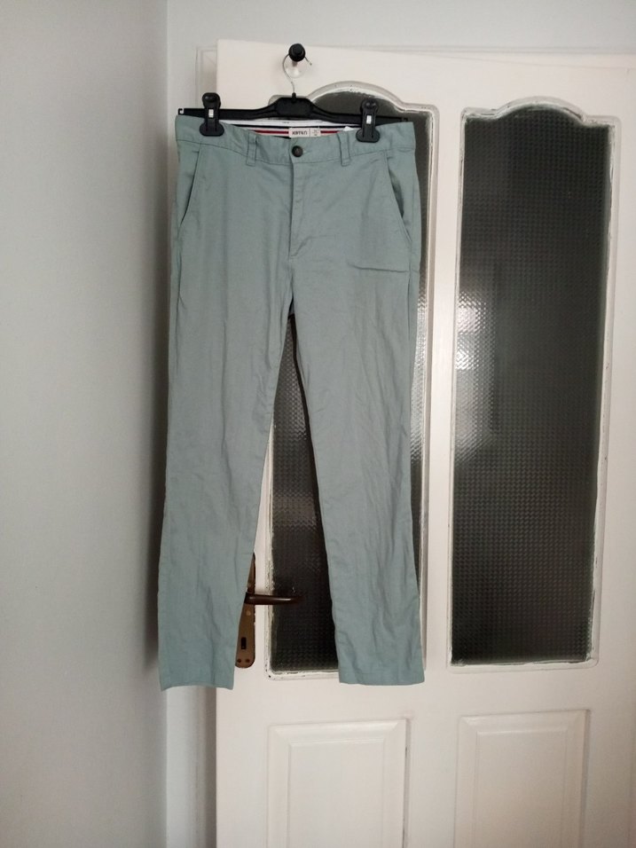 Gri keten erkek pantolon, regular fit kesim ve normal boyda, kemerli. Desensiz sade tasarımıyla günlük kullanıma uygun.