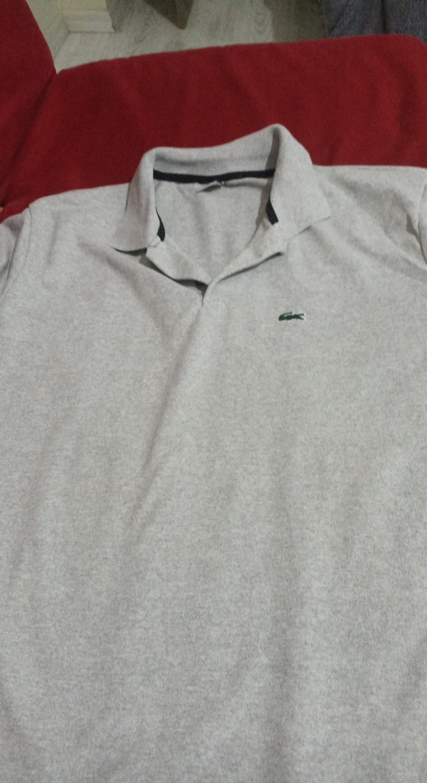 Gri keten erkek polo tişört, yakalı ve kısa kolludur. Düğmeli ön kısmı ve bol kesimiyle günlük kullanıma uygundur.