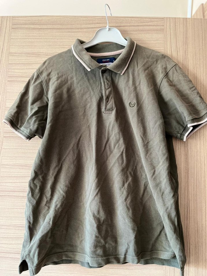 Keten kumaştan, düğmeli yakalı ve kısa kollu, bol kesim gri erkek polo tişört. Günlük rahat kullanım için uygundur.