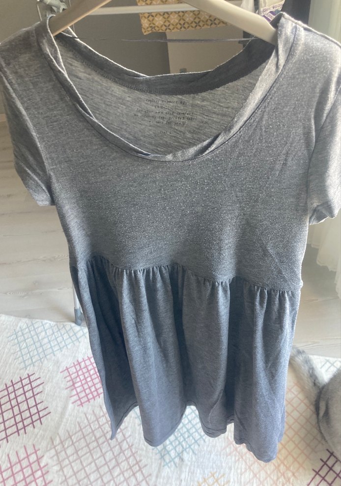 Gri renkte, keten kumaştan, kısa kollu elbise