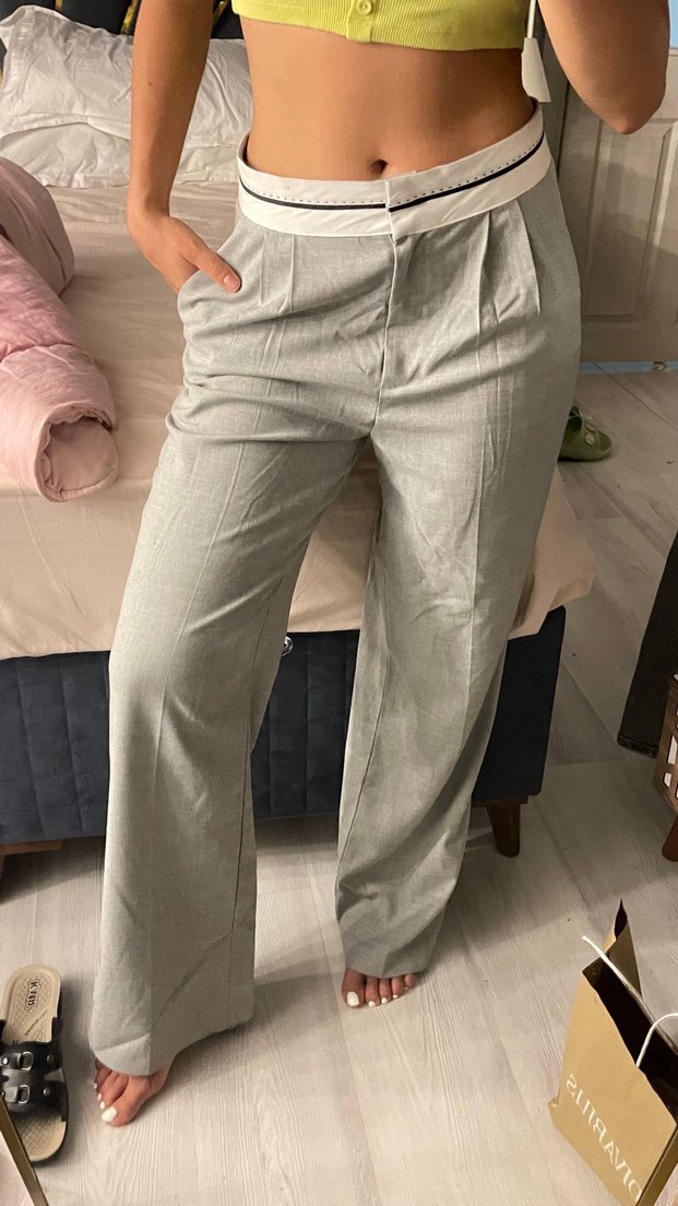 Gri Keten Kadın Kumaş Pantolon