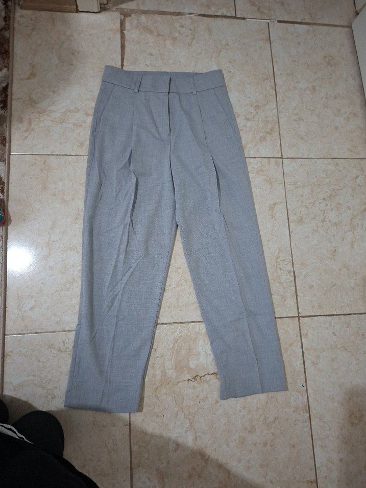 Gri renkte, keten kumaştan üretilmiş, normal boy ve regular fit kadın pantolon. Desensiz tasarımıyla ofis için şık ve rahat bir tercih sunar.