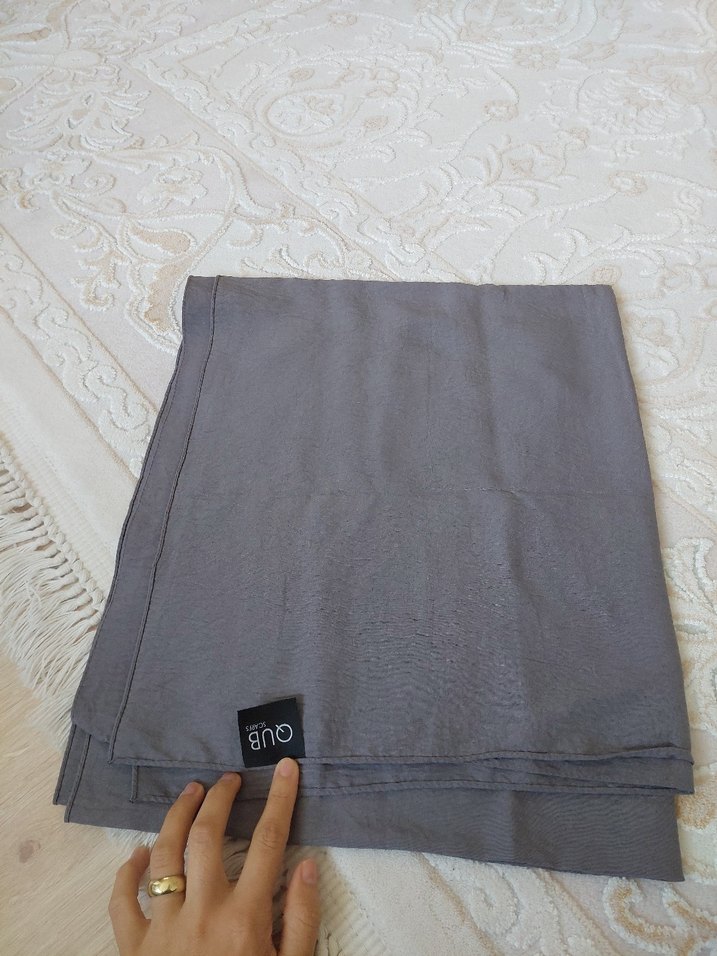 Gri keten kumaştan, yumuşak ve drapeli tasarıma sahip kadın şal, sade ve rahat bir stil sunar.