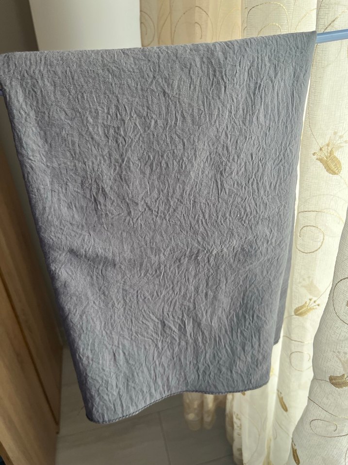 Yumuşak keten kumaştan, salaş gri renkte, rahat bohem tarzına uygun kadın şalı.