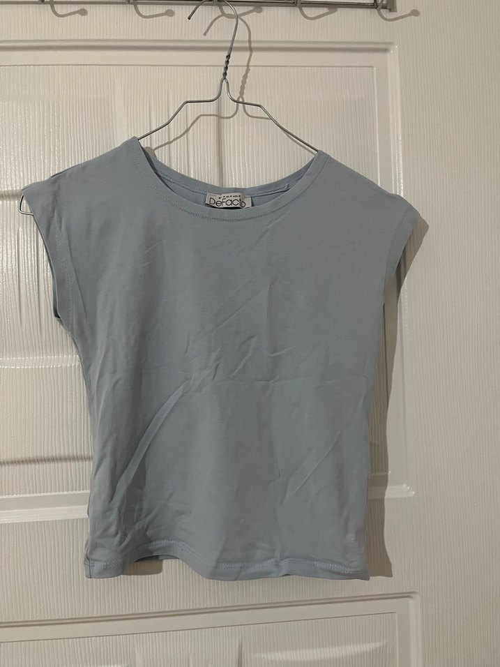 Mavi kısa kollu ve yuvarlak yakalı, salaş kesim kadın tişörtü. Desensiz, minimal ve normcore tarzda günlük kullanım için uygun. 1 kez kullanılmıştır . İhtiyaç fazlalığından dolayı satılmaktadır .
