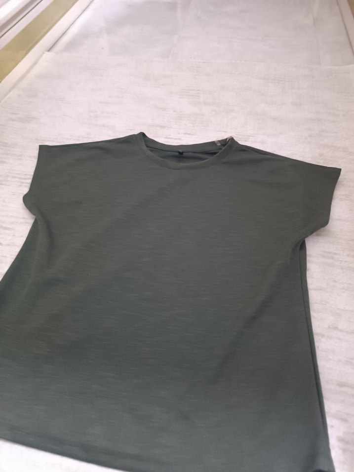 Gri Keten Kadın Tişörtü, Yuvarlak Yaka, Kısa Kollu