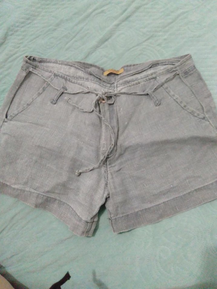 Gri keten mini şort, kemerli ve bol kesimdir. Bohem tarzıyla günlük rahat kullanıma uygundur.