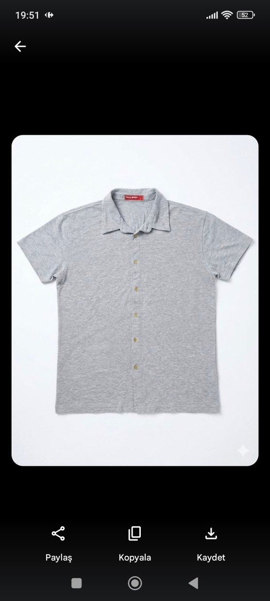 Gri keten kumaştan, kısa kollu, yakalı ve düğmeli erkek gömleği. Normal kesim ve günlük rahat kullanım için uygundur.