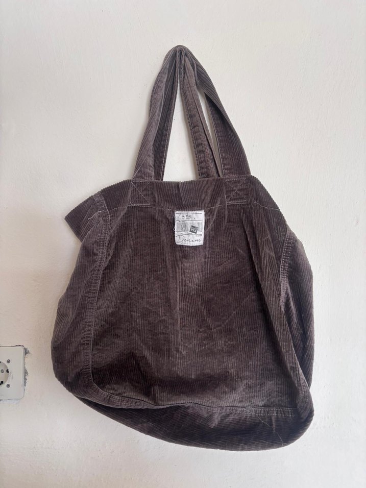 Keten kumaştan, gri tonlarında, gündelik kullanıma uygun, sade ve şık sokak tarzı kadın çantası.