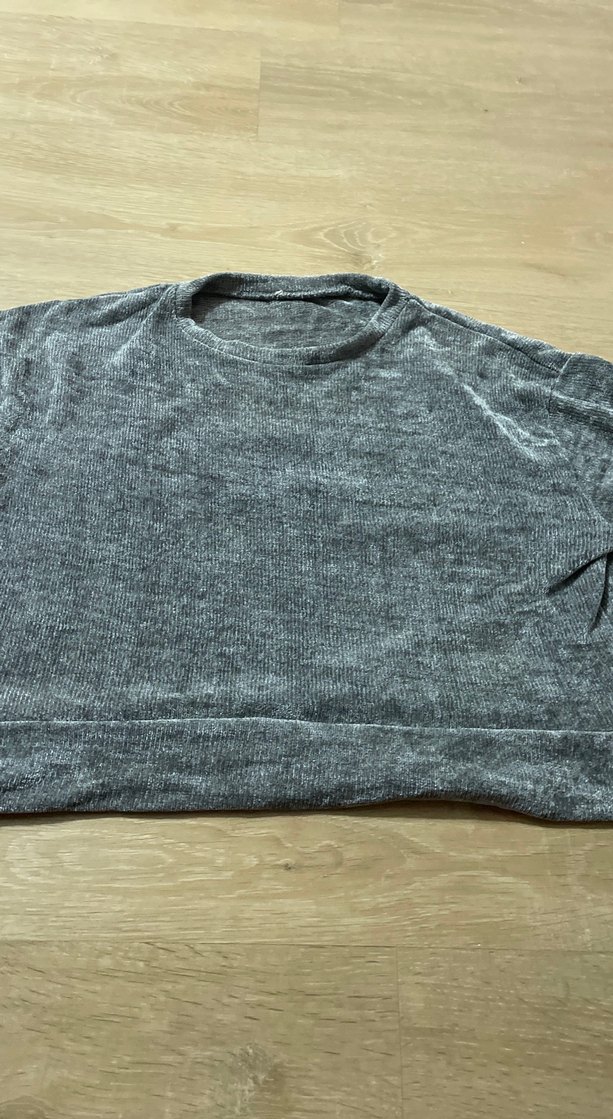 Keten kumaştan, yuvarlak yaka ve uzun kollu gri renkli salaş kadın kazak. Rahat kesimi ve midi boyu ile günlük kullanıma uygundur.