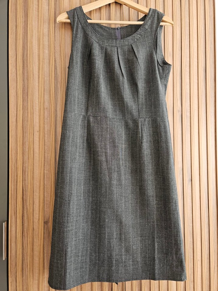 Keten kumaştan yapılmış, pilili, kolsuz gri midi elbise, ofis kullanımı için uygun ve notched lapel yaka detaylı. Bu jileyi ben çok beğendiğim için büyük beden olmasına rağmen almıştım, kemerle kullandım, gebeler için de güzel bir seçenek bence, giyim tarzımı değiştirdiğim için satıyorum yeni sahibine mutluluk götürsün.. #kiyafet #kadinkiyafet #kadingiyim #moda #sonbahar #kis #vintage #vintagegiyim #elbise #jile #hamilegiyim #hamileelbise