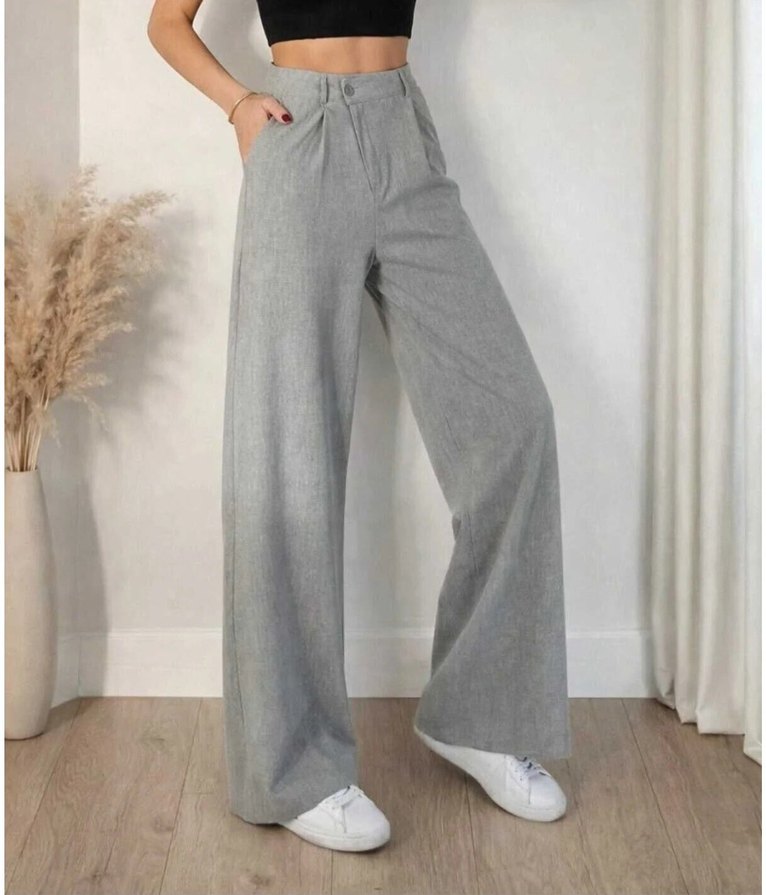Gri keten kumaştan yapılmış,Günlük kullanım için rahat ve şık bir tercih. 1 kez kullanildi