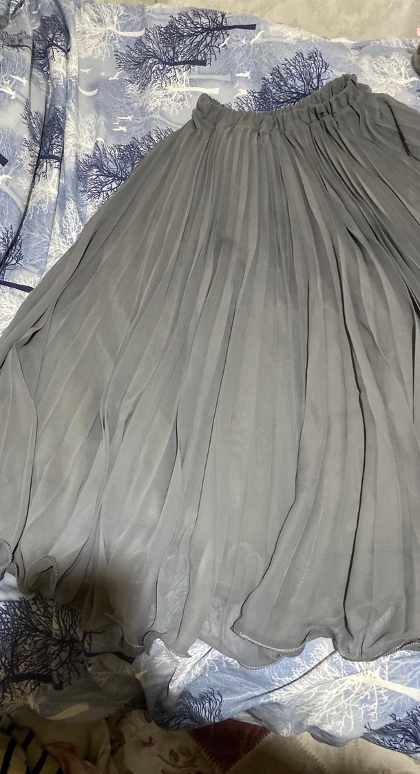 Gri renkte keten kumaştan, pilili uzun etek. Salaş kesimi ve bohem tarzı ile dış mekan kullanımı için uygundur. Boy:97-98 cm Lastiğini tamamen çektiğinde beli 51-52 cm açılıyor Lastik kısmunda bi yırtık var sadece ürünü online aldım evde denerken yırttım hiç kullanmadım yoksa malını çok sevdim
