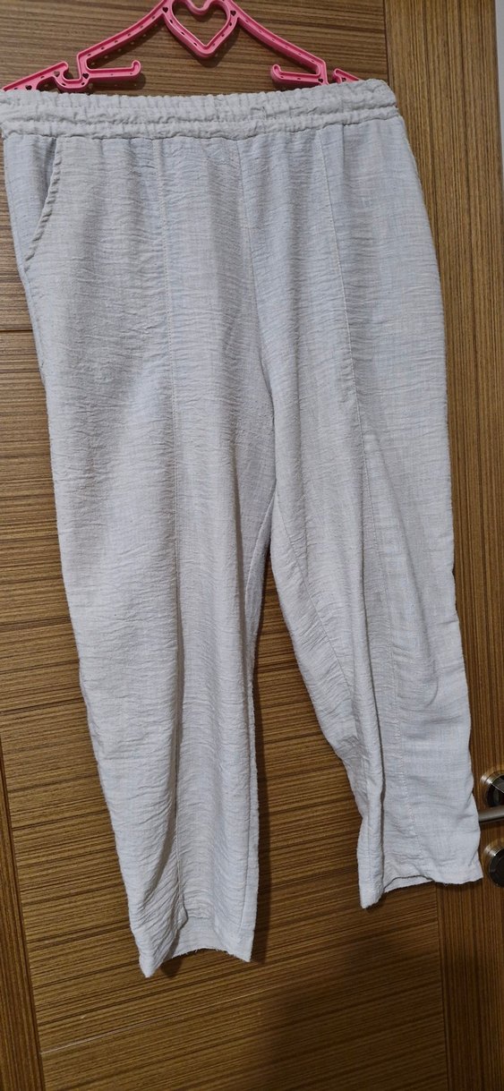 Gri Keten Piliseli Rahat Kesim Kadın Pantolon