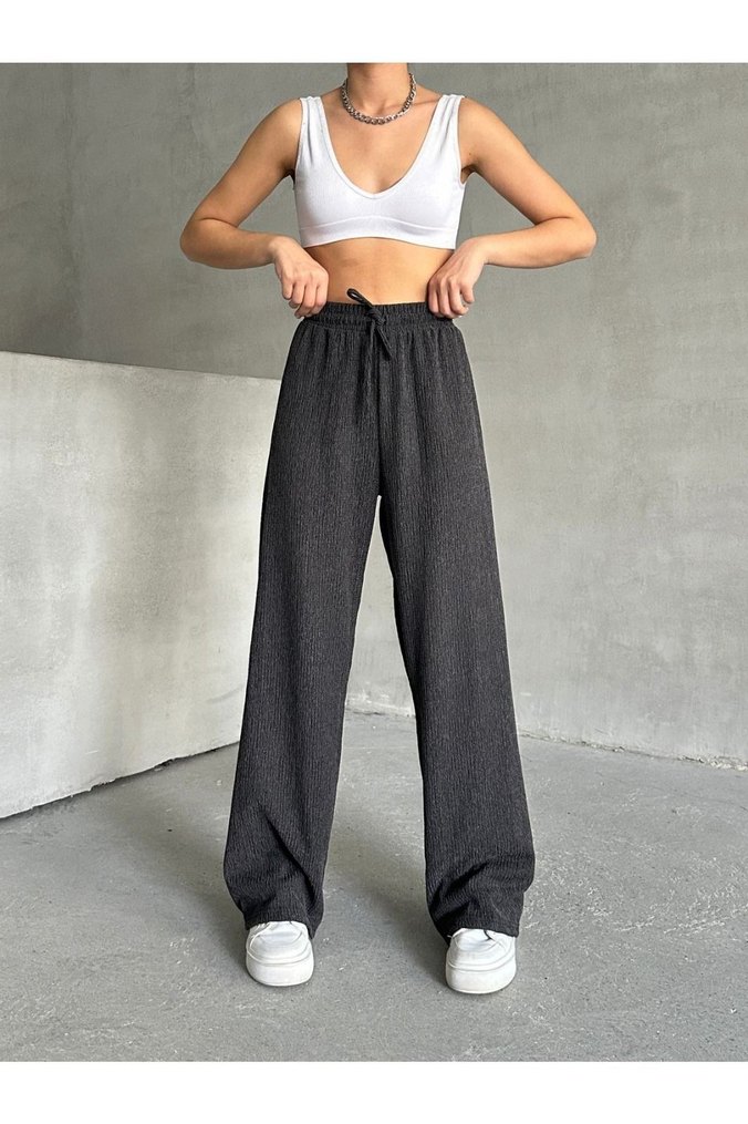 Gri keten kumaştan, rahat kesim ve midi boy kadın pantolon, gündelik kullanıma uygun, desen içermeyen şık ve rahat bir modeldir.
