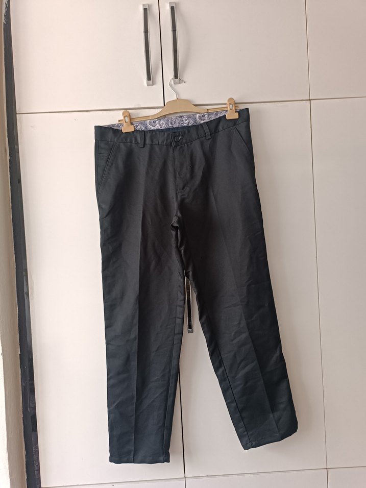 Gri keten erkek pantolon, regular fit ve normal boyda. Kemerli tasarımıyla günlük ve ofis kullanımı için uygundur.