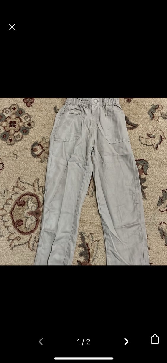 Gri keten kumaştan, salaş kesim kız pantolon. Sokak stili ve zahmetsiz şıklık sunan, desensiz rahat tasarım.