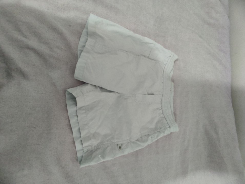 gri renkte, keten kumaştan yapılmış, rahat kesim ve sade tasarıma sahip şort