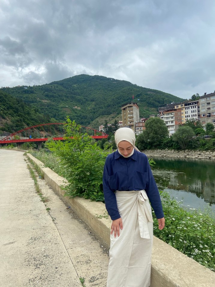 Krem keten kumaştan, uzun ve drapeli tasarıma sahip bol kesim etek. Minimalist sokak tarzı için uygun, günlük kullanıma şık ve yenilikçi bir seçenek.